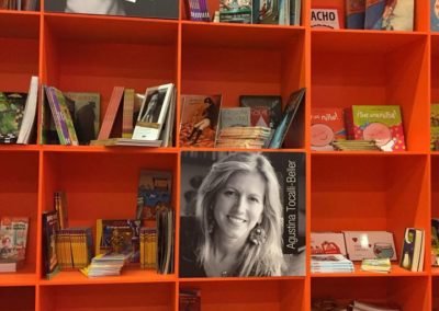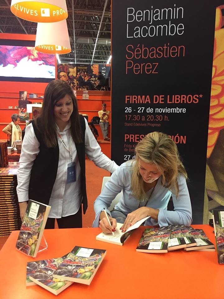 Recuerdo cuando llegué al stand de Edelvives y vi mi foto… Fue una sorpresusto. Uno de los editores lo notó, rió y me dijo: «Te acostumbrarás…»