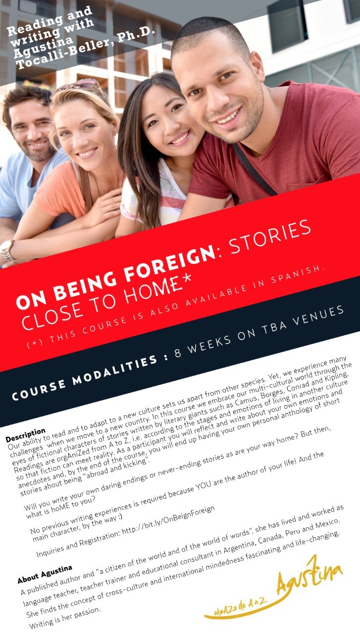 Our ability to read and to adapt to a new culture sets us apart from other species. Yet, we experience many challenges when we move to a new country. In this course, we embrace our multi-cultural world through the eyes of fictional characters of stories written by literary giants such as Camus, Borges, Conrad, Kipling and many more. Readings are orgAniZed from A to Z, i.e. according to the stages and emotions of living in another culture so that fiction can meet reality.
